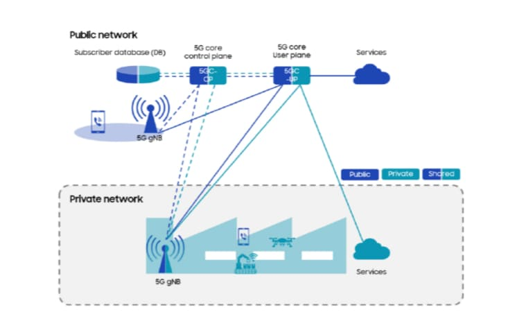 Essas redes podem ser implementadas em diversos modos, muito mais flexíveis dos que as de gerações anteriores 3G e 4G. Pode-se utilizar equipamentos totalmente separados das redes públicas ou pode-se implementar as Redes Privativas em variados graus de compartilhamento com as operadoras.