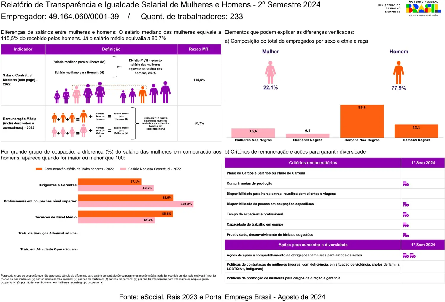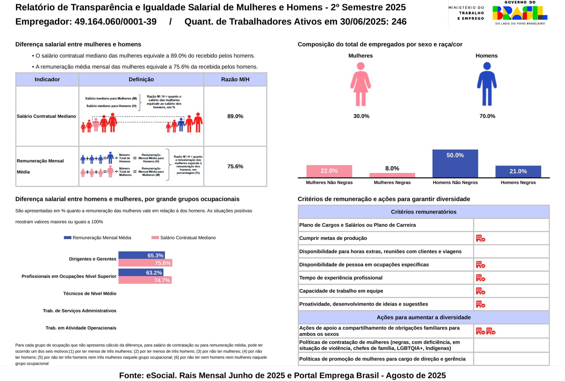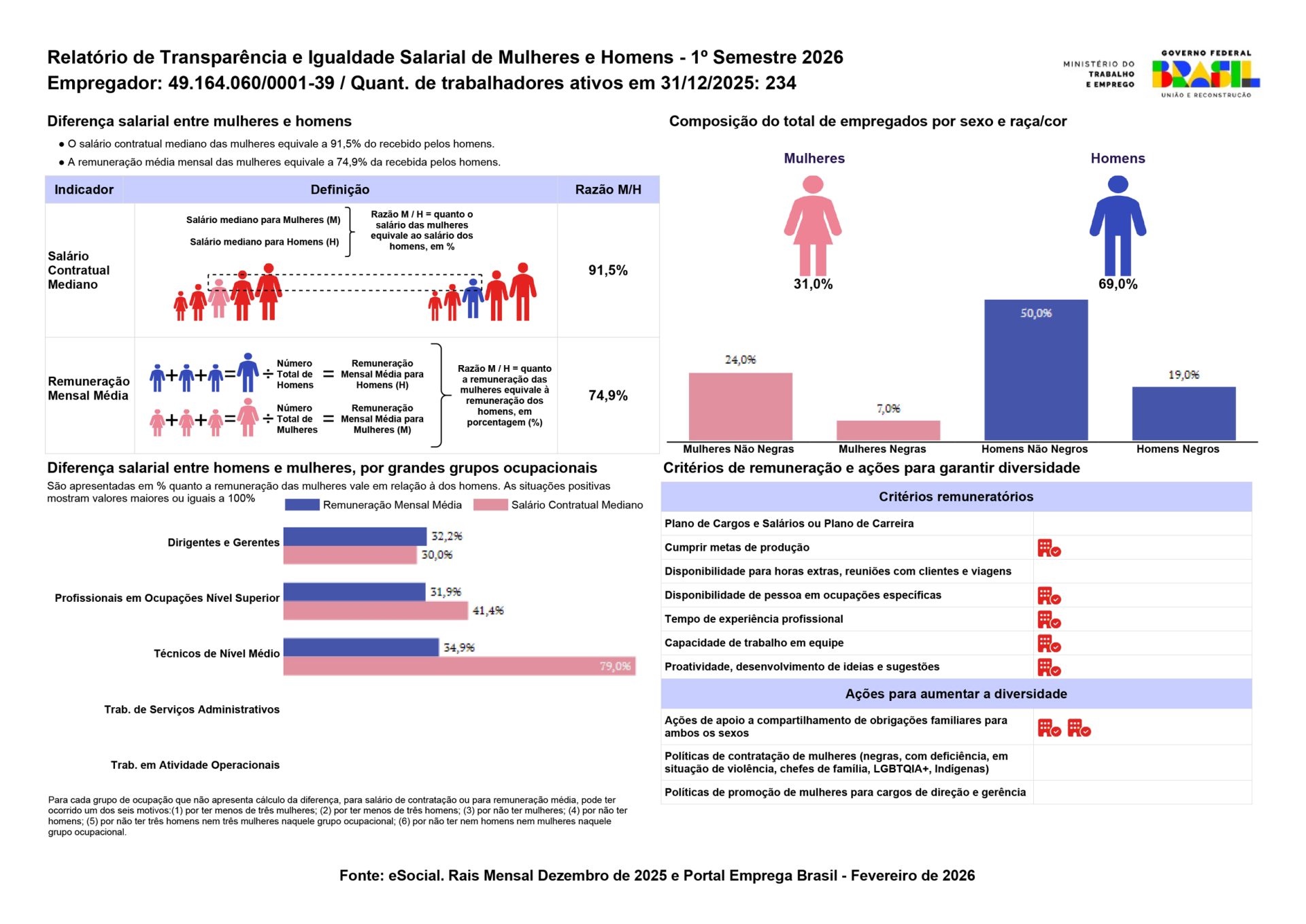 Relatório de Transparência e Igualdade Salarial de Homens e Mulheres - 1º Semestre 2026